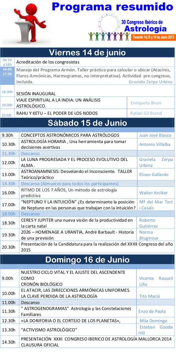 Programa del 30 Congreso Iberico de Astrologia 14,15 y 16 de Junio del 2013 Tenerife